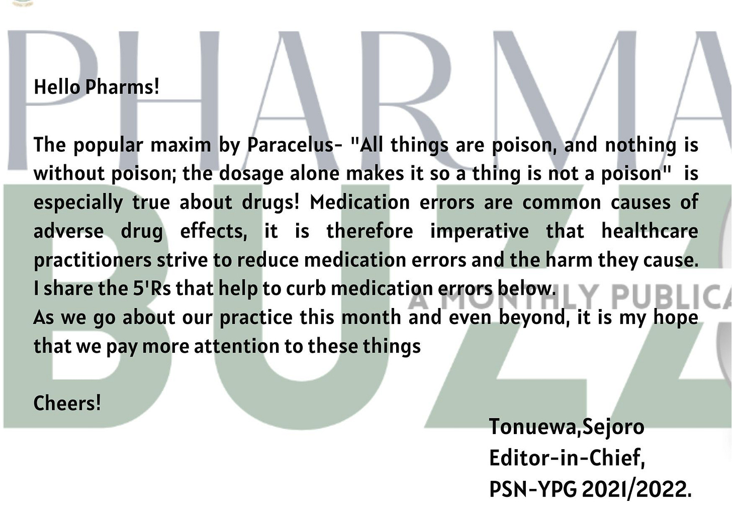 A publication of Editorial Committee, Pharmaceutical Society of Nigeria - Young Pharmacists Group 2021/2022.